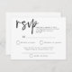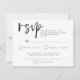Réponse du Mariage de code QR de script simple. Définissez la typographie en noir pour le titre principal RSVP en complément du reste du texte que vous pouvez facilement personnaliser. Avec votre code QR au verso comme alternative pour vos invités à répondre en ligne s'ils le souhaitent.