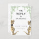 Dinosaur thème faire-part de mariage RSVP réponse carte avec drôle mariée dinosaure et marié avec aquarelle botanique verdure pour apporter la joie jurassique préhistorique à votre jour de mariage. Calligraphie moderne de typographie capricieuse avec facile à personnaliser modèle. Mariée et mariée T-Rex unique dans les teintes vertes du feuillage brun et eucalyptus. oeuvre originale de l'artiste Catherine Sweetman Idéal pour la réception du jour de mariage ou le dîner de répétition. La suite mariage jumelée comprend tout ce dont vous aurez besoin lors de votre voyage mariage amusant