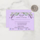 Un arrière - plan violet, du texte noir. Décoré de fleurs de lavande et de verdure d'eucalyptus. Personnalisez et ajoutez la réponse par date et sélections de menu. Retour : Violet couleur arrière - plan