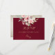 La réponse florale rose et couronne - Bourgogne présente les initiales des mariés et un bouquet floral rose sur fond bourgogne. Le verso contient des détails à remplir par le destinataire. Conçu pour coordonner avec la collection de mariage "Floral & Foil Botanical Wreath". Pour modifier les détails, cliquez sur «Personnaliser». Pour déplacer le texte ou modifier la taille, la police ou la couleur du texte, cliquez sur «Cliquez pour personnaliser davantage» initiales