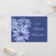 Carton de réponse d'invitation de mariage à l'osteopermum calenduleae, peinture d'art fin. Carte de réponse de mariage simple et romantique, dans des tons de bleu violet et de blanc à lilas. Conception de mariage classique faisant partie de la gamme de papeterie de mariage romantique à la marguerite. Modifiez cette invitation avec vos noms, dates et texte. Peint de manière unique à la gouache sur papier sombre par l'artiste et designer Sarah Trett.