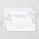 Ajoutez une touche d'élégance intemporelle à vos invitations de mariage avec ces cartes de réponse de mariage vintage. Ornées d'illustrations uniques de feuilles rococo bleues sur un fond blanc immaculé, ces cartes ajoutent instantanément un charme fantaisiste à votre papeterie de mariage. De plus, notre modèle de texte de réponse est aussi élégant que simple à adapter à vos besoins - ce qui garantit que vos cartes de réponse seront aussi spéciales que votre grand jour.