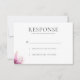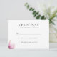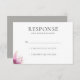 Une carte de réponse mariage coordonnée avec notre faire-part de mariage propre, élégant et moderne, avec une seule fleur de magnolia d'aquarelle rose sur un arrière - plan blanc croustillant, et élégant texte gris foncé. L'inverse est en gris solide.