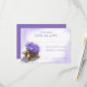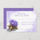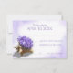 Carte de réponse au mariage d'une plage violette d'aquarelle pour compléter l'invitation avec des fleurs d'hydrangée violette délicates remplissant une coquille de conque tropicale. Tons d'aquarelle violette fond et cadre pour compléter les fleurs.