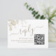 Réagissez sans effort avec cette carte RSVP de mariage, conçue pour les couples qui aiment un style de réponse simple et élégant. Avec son script de calligraphie minimaliste et sa typographie classique, cette carte allie charme intemporel et commodité moderne. La carte de réponse à code QR permet aux clients de RSVP facilement à travers votre site mariage moderne. Accenté de feuilles de verdure aquarelle et de feuilles de feuillage élégants, il ajoute une touche naturelle. Avec un monogramme personnalisé de mariée et de mariée, c’est un choix sophistiqué et simpliste pour votre grand jour.