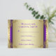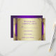 Élégantes volutes violettes et dorées, réponse pour la fête d'anniversaire de mariage de 50 ans. Cette belle carte de réponse violette et dorée est facilement personnalisable en ajoutant vos détails d'événement, style de police, taille de police et couleur, ainsi que le libellé. Vous pouvez choisir la couleur de la face arrière - violet ou or - en supprimant simplement celle que vous ne voulez pas.
