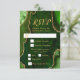 Complétez votre papeterie d'événement avec cette élégante carte RSVP dotée d'un design en marbre d'agate verte rehaussé de détails dorés luxueux. Le fond audacieux inspiré des géodes crée un look dramatique et sophistiqué, parfait pour les mariages, les anniversaires, les célébrations officielles ou les événements du soir glamour. Cette carte RSVP comprend des sections dédiées aux réponses des invités, au nombre de participants et au choix du repas, ce qui facilite la collecte de tous les détails pour votre événement. La typographie moderne et épurée garde les informations claires et faciles à lire tout en complétant la riche texture de l'agate. Personnalisez facilement tous les textes pour les adapter à votre événement et les coordonner avec la papeterie assortie.