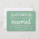 Mangez, buvez et soyez mariés — invitation de mariage campagnard rustique de style Vintage RSVP Cartes de réponse — rouleaux Tourbillonnant, bouclés et typographie de mode ancienne sur sauge menthe vert burlap arrière - plan. Ajoutez vos noms et informations de mariage dans ce modèle facile à utiliser. Elégant mais amusant et fantaisiste, style de coupe avec calligraphie de script libre peut être modifié pour votre thème rétro ou officiel mariage. Décontracté style champêtre moderne est parfait pour les mariages rustiques branchés avec une touche amusante de charme sophistiqué pour la mariée traditionnelle et le marié. Veuillez nous contacter pour obtenir de l'aide sur la personnalisation si vous avez besoin d'espace supplémentaire pour les détails de votre mariage. Autres tailles et styles de tableau de bord disponibles. Note : Il s'agit d'une carte en papier avec une image IMPRIMÉE de burlap pour effet décoratif. Il n'y a pas de texture réelle ou élevée.