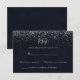 Ce carton de réponse en calligraphie avec confettis argentés est parfait pour un mariage rustique. Le design simple et élégant présente une typographie classique et élégante avec un fond bleu et des confettis argentés.