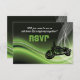 Carte de réponse RSVP de mariage de motard sur route verte, avec une moto sur un fond dégradé abstrait vert, blanc, noir et une maille blanche. Design élégant et cool parfait pour les motards au goût raffiné. Certains éléments fournis par Clipartandfonts.com.