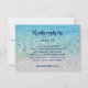 Cette conception moderne et élégante de réponse à un mariage de destination tropicale comporte une plage de sable tropical et un océan turquoise avec une écriture calligraphique élégante et moderne ainsi que des informations permettant à vos invités de répondre à votre mariage ou à votre réception de mariage via votre site web de mariage. Le verso de la carte présente une couleur ombrée bleue qui correspond à la scène océanique. Facile à personnaliser avec vos propres informations. Ces cartes sont parfaites pour un mariage sur la plage, un mariage en Floride, un mariage à Hawaï, un mariage tropical, un mariage dans les Caraïbes et un mariage de destination tropicale et un lieu romantique. Photographie de la plage de Destin, Floride et conception © par TK Goforth, tous droits réservés. D'autres articles avec cette conception peuvent être trouvés dans ma collection de mariage de destination de plage tropicale élégante et dans ma boutique Zazzle et vous pouvez également transférer