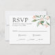 Simple et élégante, cette carte de réponse RSVP de mariage à l'aquarelle florale comporte un modèle de texte pour inclure vos choix de plats pour le repas. Un simple brin de verdure et de minuscules bourgeons de couleur pêche donnent un look frais et inspiré de la nature, ainsi qu'une police de caractères de style traditionnel. Personnalisez le texte avec la date de réponse requise et les choix de plats. Vous pouvez réorganiser le texte du plat pour le centrer après l'avoir personnalisé avec votre texte. Entrez votre texte dans le modèle de conception, puis choisissez "personnaliser davantage" pour repositionner le texte selon vos besoins. Une suite de papeterie de mariage assortie est disponible dans ce design et constitue un excellent choix pour les mariages de printemps ou d'été.