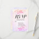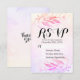 Modèles de cartes de réponse RSVP de mariage - Arrière-plan de giclure aquarelle avec feuilles aquarelles rose saumon magenta chaud violet et écriture manuscrite.
