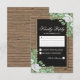 Cartes de réponse de mariage modernes et fraîches avec un fond en bois rustique, un centre de tableau en ardoise noire, de la corde, un ensemble de feuillage vert avec quelques fleurs blanches élégantes et un modèle classique de réponse de mariage.