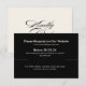 Cette carte de réponse RSVP noire sophistiquée est conçue pour compléter parfaitement votre thème de mariage élégant. Avec un design minimaliste mais saisissant, la carte invite vos invités à répondre via votre site web de mariage personnalisé. La typographie élégante et la mise en page discrète créent un look intemporel, garantissant que votre papeterie de mariage laisse une impression durable. Utilisez cette carte pour recueillir facilement les RSVP et fournir des détails supplémentaires sur l'événement tels que les menus et les horaires, tout en maintenant une esthétique cohérente et stylée pour votre grand jour.