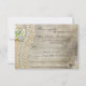 Carte de réponse RSVP de réception de mariage rustique en dentelle distressée. Invitation de mariage rustique vintage en dentelle distressée. Une carte de réponse RSVP de réception de mariage très chic et rustique shabby chic présentant différentes fleurs vertes et crème avec des embellissements métalliques à l'intérieur et autour d'elles, des éléments semblables à des perles ornent le haut et le bas et une dentelle victorienne fantaisie ainsi qu'un oiseau sur une branche ornent cette invitation sur un fond brun rustique. Une excellente invitation de réponse RSVP de réception rustique vintage en dentelle distressée pour ce mariage rustique ou vintage et ces invitations sont abordables mais ont l'air génial ! INVITATION ASSOCIÉE CI-DESSOUS, IL SUFFIT DE DESCENDRE !