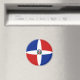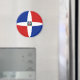 Le drapeau de la République Dominicaine a été soigneusement ajusté à la forme circulaire de cet aimant. Une façon décorative de promouvoir la culture dominicaine.