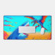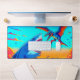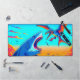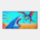 Ce tapis de bureau a un requin qui chasse un dinosaure dessus.