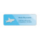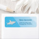 Retourner l'étiquette d'adresse avec un requin mignon sur un arrière - plan bleu. Le étiquette comprend des modèles pour votre nom et votre adresse.
