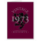 L'intérieur de la réservation vintage 1973 carte d'anniversaire que lit, "vous ne sont pas vieux, vous sont vintages !" Elle met une rotation positive sur le vieux bâillon "au-dessus de colline".