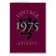 L'intérieur de la réservation vintage 1975 carte d'anniversaire que lit, "vous ne sont pas vieux, vous sont vintages !" Elle met une rotation positive sur le vieux bâillon "au-dessus de colline".
