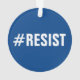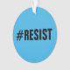 Célébrez votre engagement à la haine de combat et fanatisme sur votre arbre de Noël avec un ornement acrylique fait sur commande comportant le #Resist de hashtag en texte noir audacieux sur un arrière - plan bleu lumineux sur l'avant et en texte blanc audacieux sur bleu-foncé sur le dos.