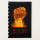 Le planificateur thématique justice sociale dispose d'un grand poing de feu et de flammes avec un texte "RESIST" personnalisable en rouge police moderne sur arrière - plan noir.