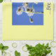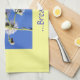Serviettes de cuisine qui inspirent. Serviettes de plats avec devis. Celui-ci est décoré de couleurs jaune/bleu, avec marguerite. "Respire"