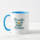 Commencez votre journée avec des vibes tropicales et de l'énergie apaisante. Cette tasse inspirante contient l'expression "Breathe Relax" en écriture de plage avec un coucher de soleil serein, des palmiers et des vagues de l'océan. Parfait pour siroter votre brasse préférée en rêvant de rivages sablonneux et de journées sans stress.