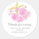 Belle aquarelle fleurie rose printanière fleurs merci pour l'auto-collant mariage à venir. Personnalisez avec le nom de votre mariée et de votre mariée le nouveau nom de famille et la date du mariage. Idéal pour les faveurs de mariage. Une partie de la collection fixe mariage d'aquarelle en fleurs roses. © Original aquarelle art et design par Sarah Trett pour www.mylittleedenweddings.com