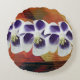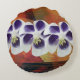 Fleurs blanches et violettes, jaune, orange, arrière - plan rouge. collage d'art Abstrait sur coussin rond.