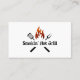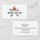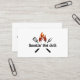 Cartes de visite à thème barbecue conçus avec des ustensiles et un graphisme de flamme et du texte que vous pouvez personnaliser avec votre nom de restaurant figurant sur le devant. Il suffit de remplacer notre texte par votre pour un design customisé que vous pouvez personnaliser en ligne.