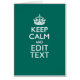 Votre cadeau personnalisé et festif Keep Calm sur un style personnalisé et turquoise cadeau de décoration turquoise. Un style personnalisé Keep Calm disant. Essayez humour ou fantaisie sur vos mots créatifs sur deux lignes de texte modifiables. N'oubliez pas d'utiliser les lettres CAPITAL pour obtenir les meilleurs résultats.