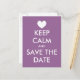 Restez calme et enregistrez la carte postale de la date. Conception cardiaque personnalisée pour les clients mariages. Texte élégant sur le dos pour le message de mariée et mariée.