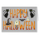 Le devant de cette amusante carte de voeux d'Halloween a stylisé le texte orange qui dit "Happy Halloween". Sont également inclus des chats noirs, un casquette sorcier, un fantôme, une chauve-souris et un balai. L'intérieur a votre texte personnalisé, qui dit actuellement "Restez WEIRD et ÉFFRAYANT".