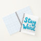 Un carnet en spirale avec "STAY WEIRD" en texte bleu, idéal pour les étudiants ou les créatifs qui aiment la papeterie décalée.