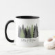 Une tasse à café qui dit "Retour à la nature" avec une photo de pins qui s'estompe l'un dans l'autre est un design minimaliste et apaisant, souvent porté par les amoureux de la nature ou ceux qui cherchent une connexion au monde naturel. Il suggère un désir d'échapper à l'agitation de la vie moderne et de renouer avec la simplicité et la beauté de la nature.