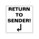 Ce modèle de tampon en caoutchouc de base comporte le message "RETOUR À L'EXPÉDITEUR !", ainsi qu'un symbole de flèche. Il pourrait être utilisé pour indiquer que le courrier postal reçu a été livré à la mauvaise adresse ou que le destinataire est inconnu, et devrait être retourné à l'expéditeur.