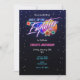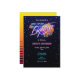 Retour à l'invitation des années 80 avec une typographie de style néon "RETOUR AUX ANNÉES 80''. Cette conception comprend des éléments de violet foncé, de bleus, de jaune, d'orange et de rose, un soleil néon et des formes, ainsi que des éléments de design inspirés des années 80. Les produits comprennent un modèle pour une personnalisation personnelle.