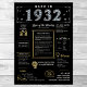 Embarquez pour un voyage en 1932 avec notre affiche digitale captivante, débordant de faits historiques, d'informations et d'idées intrigantes d'autrefois. Ornée de faux accents d'or et d'argent sur fond noir frappant, avec des icônes distinctives et une typographie audacieuse, cette affiche dégage un charme sans âge. Qu'il s'agisse d'animer des conversations lors de fêtes d'anniversaire ou d'anniversaires, ou lorsqu'il est exposé avec élégance, il se transforme en souvenir chéri, imprégnant tout espace d'une ambiance nostalgique. Impressionnez vos proches avec notre affiche imprimable de 1932, un cadeau unique qui déborde de nostalgie et de personnalité. Riche de détails passionnants, il propose un voyage personnalisé à travers l'histoire, ce qui en fait un lieu idéal pour commémorer un anniversaire spécial. Plongez-vous dans la riche tapisserie de 1932, explorant des événements importants, des phénomènes culturels, des inventions pionnières, des coûts typiques des biens, des tendances de mode et des noms populaires de bébé de l'époque. De la construction monumentale du barrage Hoover et du pont Golden Gate à des découvertes scientifiques révolutionnaires comme Pluton et le neutron, notre affiche résume l'essence d'une ère transformatrice. Entrez dans le monde glamour de 1932 avec un aperçu des tendances de la mode comme les robes Flapper et les Casquettes Cloche, accompagné des termes en argot qui ont défini l'époque. Découvrez le coût moyen d'objets de la vie quotidienne comme une miche de pain ou un gallon d'essence, offrant un aperçu captivant de la vie quotidienne il y a près d'un siècle. Avec notre affiche méticuleusement conçue, plongez-vous dans les vues et les sensations d'une époque révolue, célébrant l'héritage durable de 1932 avec un style inégalé.