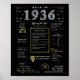 Embarquez pour un voyage en 1936 avec notre affiche numérique captivante, remplie de faits historiques, de faits saillants et de nouvelles intrigantes d'années passées. Équipé de faux accents dorés et argentés sur fond noir, orné d'icônes distinctives et d'une typographie audacieuse, ce poster rayonne d'une élégance intemporelle. Qu'il s'agisse d'allumer des conversations lors de fêtes d'anniversaire ou d'anniversaires, ou lorsqu'il est encadré avec goût, il évolue en gardien chéri, subissant n'importe quel espace avec une allure nostalgique. Éblouissez vos proches avec notre affiche imprimable Back in 1936, un cadeau distinctif débordant de nostalgie et de caractère. Riche d'idées captivantes, il offre un voyage personnalisé à travers l'histoire, ce qui en fait un choix idéal pour commémorer un événement d'anniversaire spécial. Plongez-vous dans la riche tapisserie de 1936, plongez dans des événements importants, des phénomènes culturels, des inventions pionnières, des coûts typiques des biens, des tendances de mode et des noms de bébé populaires de l'époque. De la construction monumentale du barrage Hoover et du pont Golden Gate à des percées scientifiques comme la découverte de Pluton et du neutron, notre affiche résume l'essence d'une période de transformation. Entrez dans le monde glamour de 1936 avec des aperçus des tendances de la mode comme les robes Flapper et les Casquettes Cloche, accompagnés de termes en argot qui définissaient l'époque. Explorez les coûts moyens d'articles quotidiens comme une miche de pain ou un gallon de gaz, offrant un aperçu captivant de la vie quotidienne il y a près d'un siècle. Avec notre affiche soignée, plongez-vous dans les vues et les sensations d'une époque révolue, célébrant l'héritage durable de 1936 avec un style sans pareil.
