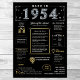 Entrez en 1954 avec notre affiche d'anniversaire numérique captivante, remplie de faits historiques, d'événements remarquables et d'histoires intrigantes du passé. Ornée d'élégants détails dorés et argentés contre un arrière - plan noir audacieux, avec des symboles uniques et un texte élégant, cette affiche d'anniversaire dégage un charme intemporel. Qu'il s'agisse d'allumer des conversations lors de réunions d'anniversaire ou de se faire chérir comme gardien, il évoque des souvenirs nostalgiques. Notre affiche d'anniversaire offre un aperçu de 1954, explorant des aspects comme le revenu moyen, les inventions populaires, les événements importants, les tendances de la mode et l'argot de l'époque. Il met en lumière des moments clés tels que la première émission de télévision couleur, le baby-boom d'après-guerre, l'essor du rock and roll et le développement du vaccin contre la polio. Des inventions notables comme le photocopieur, la batterie alcaline et la bombe à hydrogène sont également présentées, montrant les avancées technologiques de l'époque. Dans l'ensemble, l'affiche d'anniversaire saisit l'essence de la vie dans les années 1950, englobant la technologie, les frais de vie et les tendances culturelles comme la musique et la mode. Il sert de pièce de conversation mémorable lors de fêtes d'anniversaire et d'anniversaires et fait un souvenir réfléchi lorsqu'il est encadré.