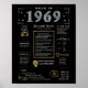 Revenez en 1969 avec notre affiche d'anniversaire numérique captivante, riche de faits historiques, d'événements marquants et d'histoires intrigantes du passé. Ornée d'élégants détails dorés et argentés contre un arrière - plan noir audacieux, avec des symboles uniques et un texte élégant, cette affiche d'anniversaire dégage un charme intemporel. Qu'il s'agisse d'allumer des conversations lors de réunions d'anniversaire ou de se faire chérir comme gardien, il évoque des souvenirs nostalgiques. Notre affiche d'anniversaire donne un aperçu de 1969, explorant des aspects tels que le revenu moyen, les inventions populaires, les événements importants, les tendances de la mode et l'argot de l'époque. Il met en lumière des moments clés tels que l'avènement de la première calculatrice portative, l'atterrissage de la Lune américaine, le mouvement pour les droits civiques et l'approbation de la pilule contraceptive. Des inventions remarquables, comme le premier laser, le stimulateur cardiaque et la valve cardiaque artificielle, sont également présentées, montrant les avancées technologiques de l'époque. Dans l'ensemble, l'affiche d'anniversaire reflète l'essence de la vie dans les années 1960, englobant la technologie, les frais de vie et les tendances culturelles comme la musique et la mode. Il sert de pièce de conversation mémorable lors de fêtes d'anniversaire et d'anniversaires et fait un souvenir réfléchi lorsqu'il est encadré.