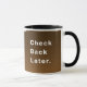 Certains matins, vous n’êtes tout simplement pas ouvert pour les affaires - et cette tasse le rend fort et clair. La tasse à café "Check Back Later" est votre réponse à l'extérieur du bureau alimentée à la caféine sous forme de céramique. Doté d’un texte blanc et audacieux sur un enveloppement riche de café, il est parfait pour les introvertis, les personnes qui ne sont pas matinales, ou toute personne qui a besoin d’un peu de paix avant le buzz. Que vous évitez les petites conversations ou que vous fassiez seulement du farniente mentale, cette tasse a votre dos.