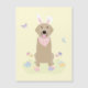 Une jolie illustration d'un chien de repérage doré portant des oreilles de lapin et un mignon bandana de Pâques. Entouré d'oeufs de Pâques décorés, de fleurs printanières et de papillons.