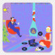 Ces Stickers Retro Home for the Holidays ressemblent à une scène d'un spécial de Noël télévisé des années 60. Le design minimaliste présente un beau couple de dessins animés dans le salon d'une maison moderne du milieu du siècle. La pièce est bien visible avec un mur en pierre violet et bleu et un tapis rayé violet et bleu assorti. Contre le mur, une cheminée en forme de cône turquoise avec un feu rugissant. Deux bas de Noël rouges et blancs ont été accrochés avec soin par la cheminée mod. Des brins de lumières colorées de Noël sont accrochés au-dessus du mur. Dans le coin, l'homme suave de la maison se dort dans une chaise d'oeuf rouge. Il porte un costume bleu avec une cravate rouge. Il y a une branche de saint épinglé sur son revers. D'un côté, il tient un verre à martini. Pas étonnant qu'il soit si plein d'esprit de Noël ! A côté de lui, il y a un petit arbre de Noël vert avec des ornements turquoises et une étoile jaune. Accroché au plafond, il y a un luminaire Spoutnik jaune. Une blonde avec une silhouette en sablier est assise sur le tapis. Elle porte une robe rouge festive et un chapeau de Père Noël. A côté d'elle, sur le sol, il y a un lecteur portable bleu et noir. Plusieurs albums de Noël sont éparpillés près du magnifique deejay. Vas-y et chante. Tu sais que tu veux !