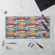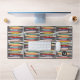 Ce tapis de bureau backgammon a une conception d'âge atomique rétro avec beaucoup de couleurs vintages, des symboles atomiques et d'explosion utilisés sur les pièces de jeu. Un motif super amusant pour toute personne qui aime rétro design moderne du milieu du siècle et le jeu du backgammon. Le motif sur ce tapis de bureau peut être fait petit ou grand.
