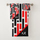 Améliorez la décoration de la salle de bains avec un ensemble de serviettes de bain sur mesure. Retro Art Déco Rouge Noir Abstrait Motif Design Ensemble de serviettes de bain monogrammé. Super idée cadeau.