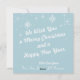 Une carte de Noël plate et personnalisable avec un renne de bébé de style rétro sur un arrière - plan bleu pâle avec des flocons de neige rétro et une zone de texte personnalisable sur le dos qui dit : "Nous vous souhaitons un joyeux Noël et une bonne année."