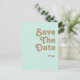 Cette carte postale rétro de plage | aqua save the date est parfaite pour votre mariage d'été simple, vintage, coloré, tropical et bohème. Sa police unique de style bohème du milieu du siècle donne à ce design une ambiance hippie groovy minimaliste classique. Supposons que vous cherchiez un design qui présente des couleurs océaniques côtières rustiques et vives pour votre mariage de plage créatif des années 70. Dans ce cas, ce produit, ainsi que sa collection de mariage coordonnée, sont ce que vous recherchez. N'hésitez pas à changer la couleur, à ajouter vos propres illustrations, graphiques ou photos. Si vous avez des questions sur la conception de ce produit, n'hésitez pas à nous contacter !